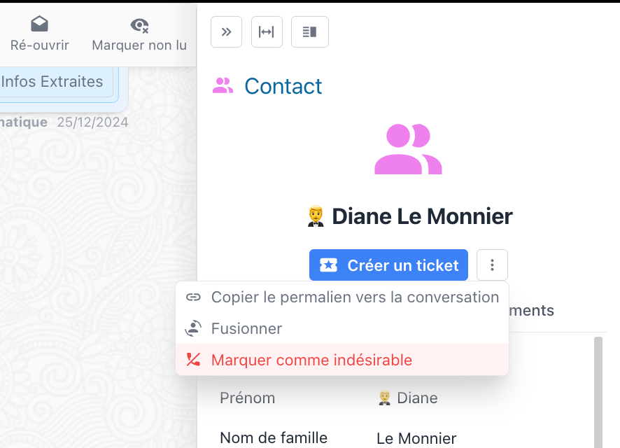 Désormais, vous pouvez bloquer un contact directement depuis sa fiche contact en cliquant sur « Marquer comme indésirable ».